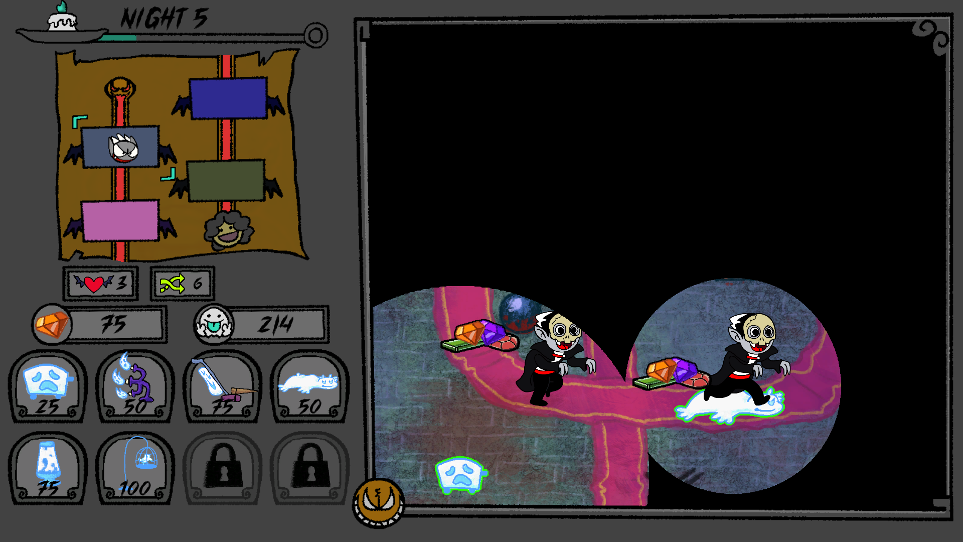 - Towers are haunted by default but you can only have a limited number of haunted towers. Click on a tower in the level to haunt/unhaunt.